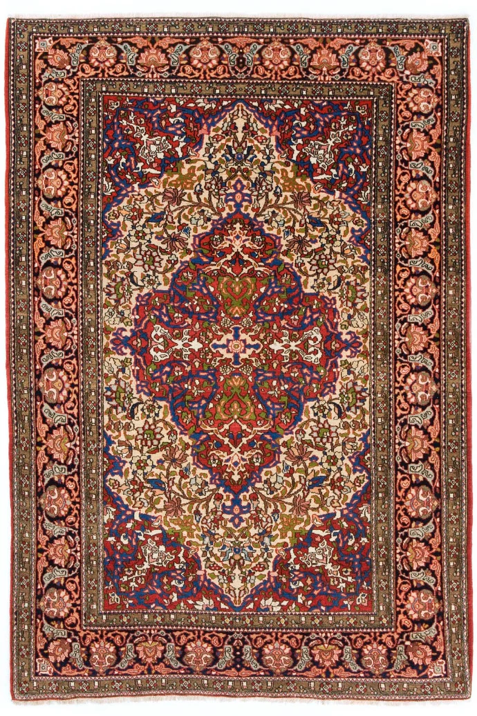 Splendido esemplare di Kashan Mohtashem (Persia centrale) - buono stato di conservazione - trama ed ordito in cotone e lavorazione in lane pregiate. Metà del XIX secolo.